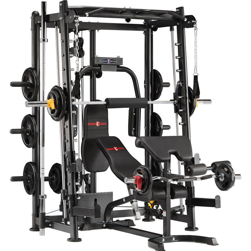 康強史密斯機BK-3000B龍門架深蹲架臥舉床小飛鳥綜合訓練器健身器材 3000B黑+3018訓練凳+80KG杠鈴片+2.2米桿